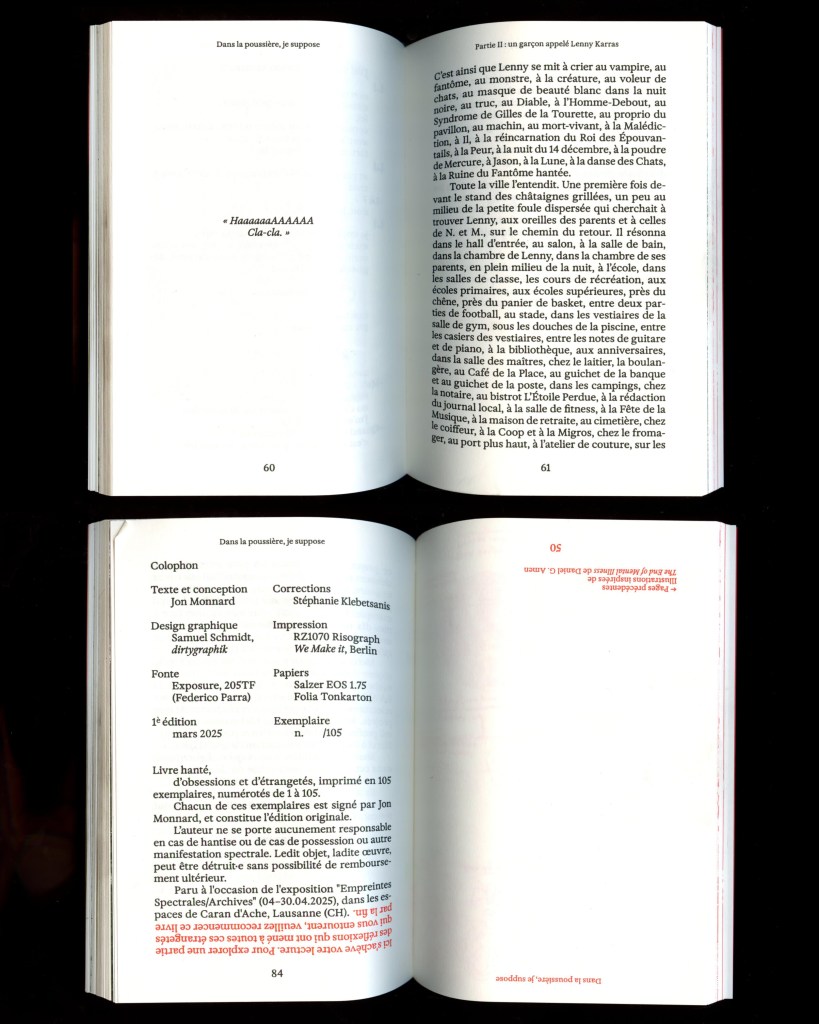 La publication est l’élément central de l’exposition. Ce livre se présente comme une archive retrouvée, inspirée d’une histoire ayant hanté l’enfance du narrateur.