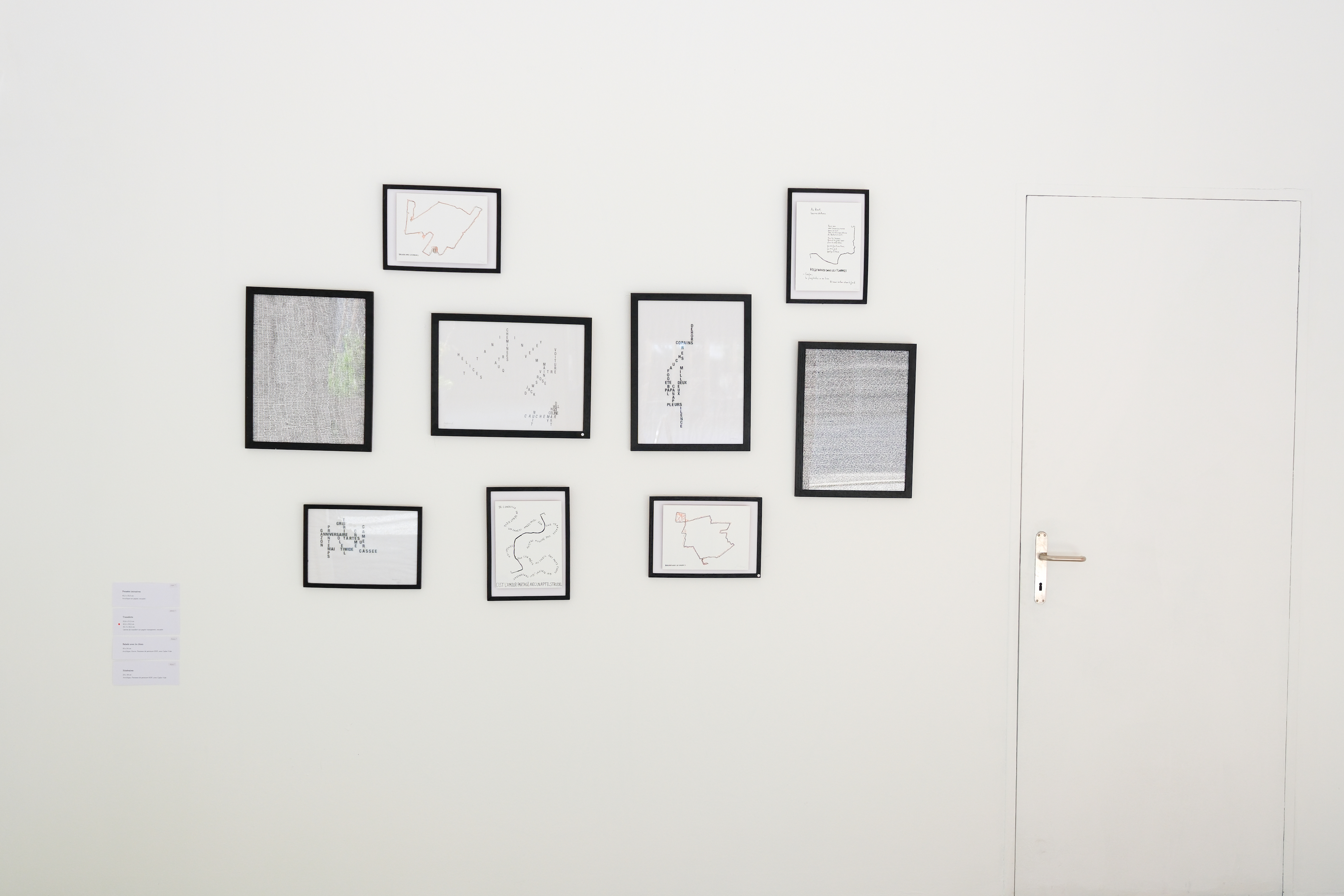 Chaque œuvre suit un tracé continu en transports publics (U-Bahn, tram, S-bahn), en pointillé (à pied) ou en traits-pointillés (vélo), reliant le lieu de vie à la destination.