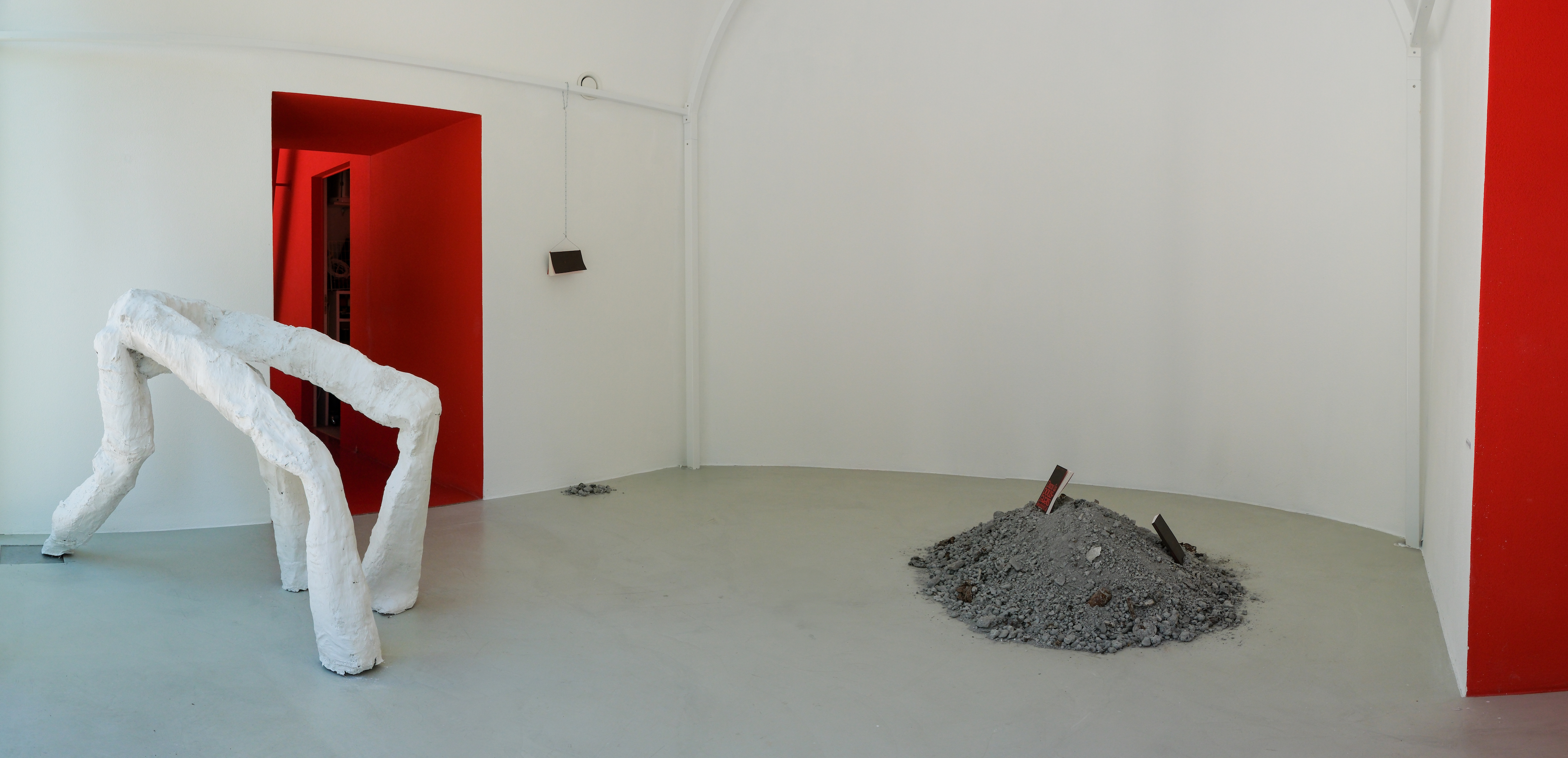 Le livre s’expose comme le résultat du processus créatif, posé sur un monticule de mâchefers. Ce résidu issu de la fusion des métaux évoque la destruction d’objets solides, et le retour à la poussière. Le livre questionne la genèse de la création : de la réflexion à la finalisation.