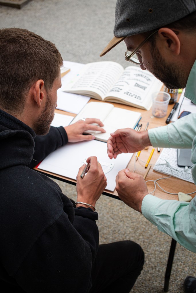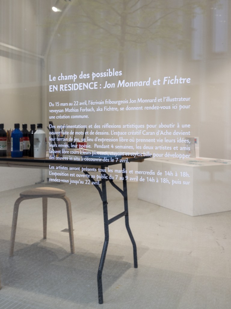 Première exposition, en duo avec Mathias Forbach (Fichtre), pour Caran d’Ache.